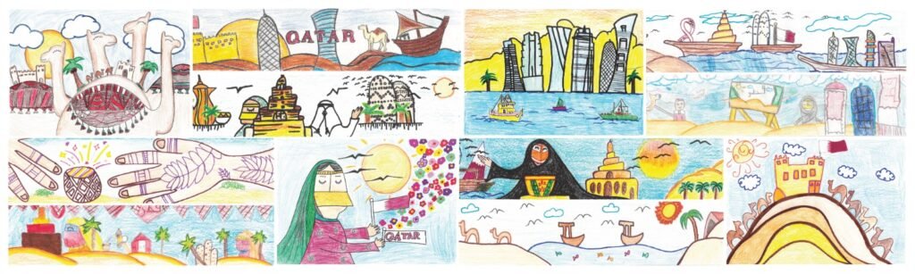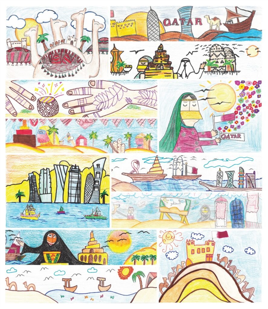 Inspired by this year’s Founder’s Day slogan, “With you it rises, and from you it awaits,” students from Grades 3, 4, and 5 were invited to create original artworks reflecting Qatar’s heritage, values, and strong sense of community. A selection of these thoughtful works has been integrated into the hotel’s Qatar National Day celebrations.